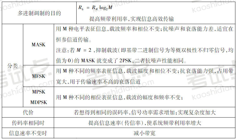 多进制调制的目的:为了提高频带利用率,使一个码元携带多个信息