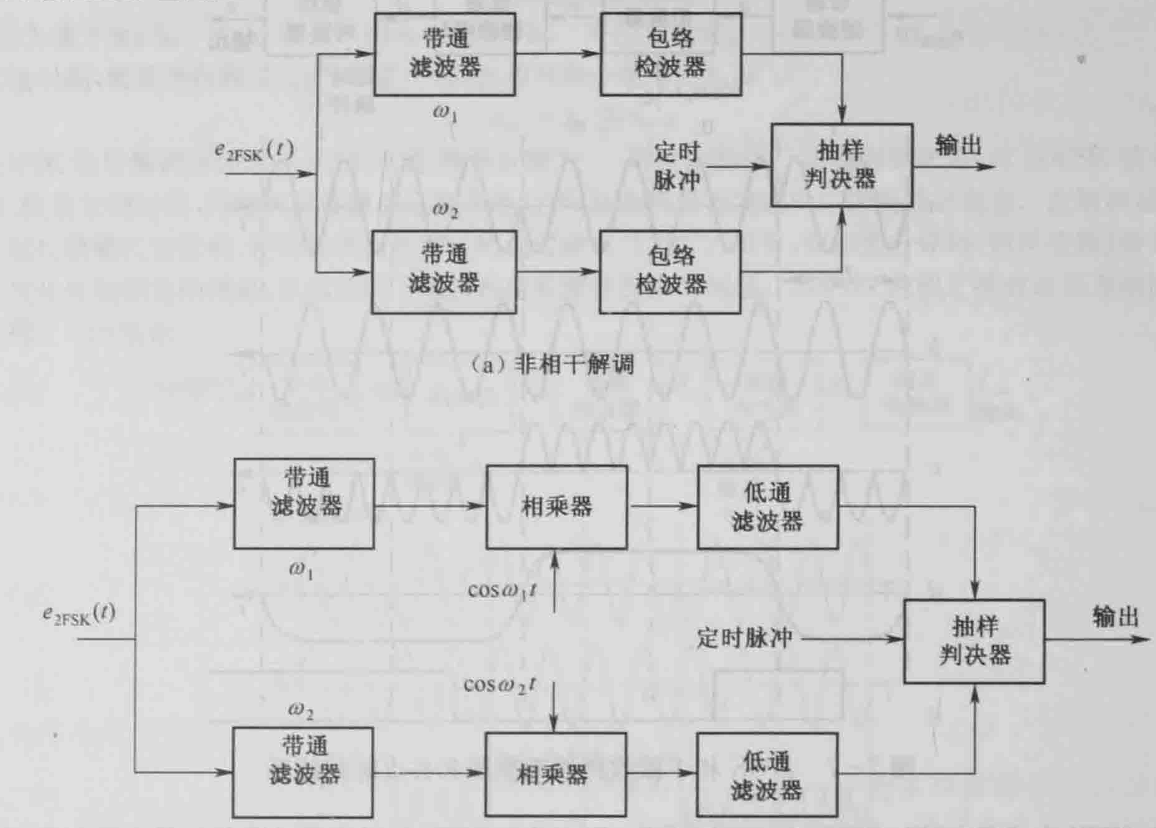 FSK:⎩⎪⎪⎪⎪⎪⎪⎪⎪⎪⎪⎪⎪⎨⎪⎪⎪⎪⎪⎪⎪⎪⎪⎪⎪⎪⎧e2FSK(t)={Acosw1t发送“1”Acosw2t发送“0”=s1(t)cosw1t+s2(t)cosw2t{s1(t)=∑nang(t−nTB)s2(t)=∑naˉng(t−nTB)an={+1概率为P0概率为1−P