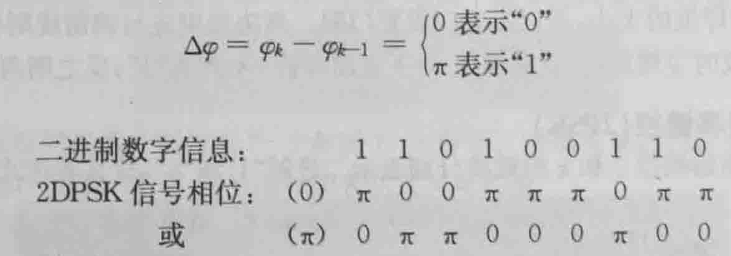 PSK:⎩⎪⎪⎪⎪⎪⎪⎪⎪⎪⎨⎪⎪⎪⎪⎪⎪⎪⎪⎪⎧e2PSK(t)={Acoswct发送“1”−Acoswct发送“−1”=s(t)coswcts(t)=∑nang(t−nTB)an={+1概率为P−1概率为1−P