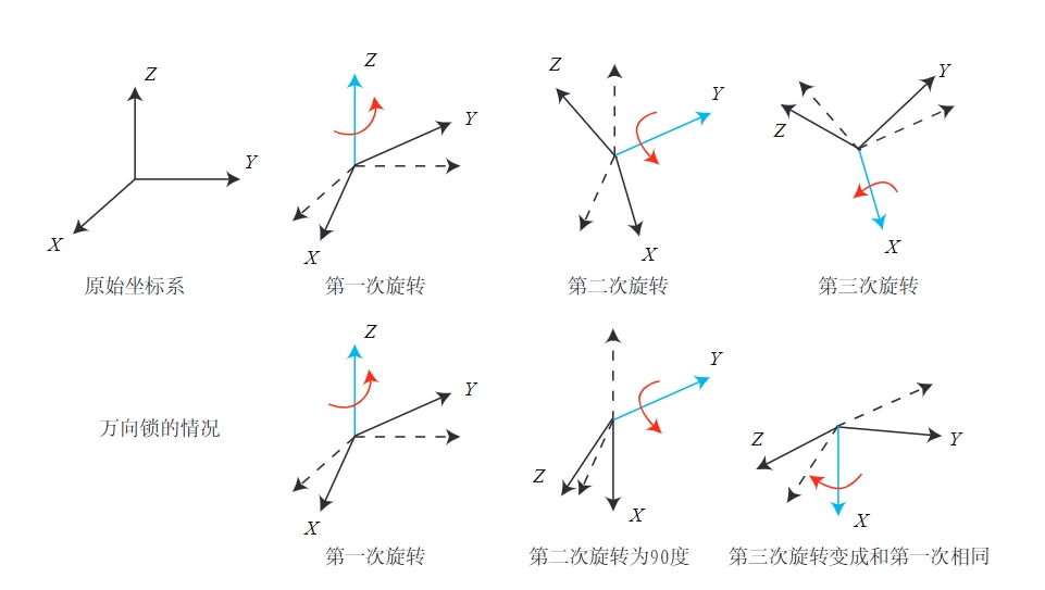 欧拉角的一个重大缺点是会碰到著名的万向锁问题,欧拉角不适于插值和迭代,往往只用于人机交互中。